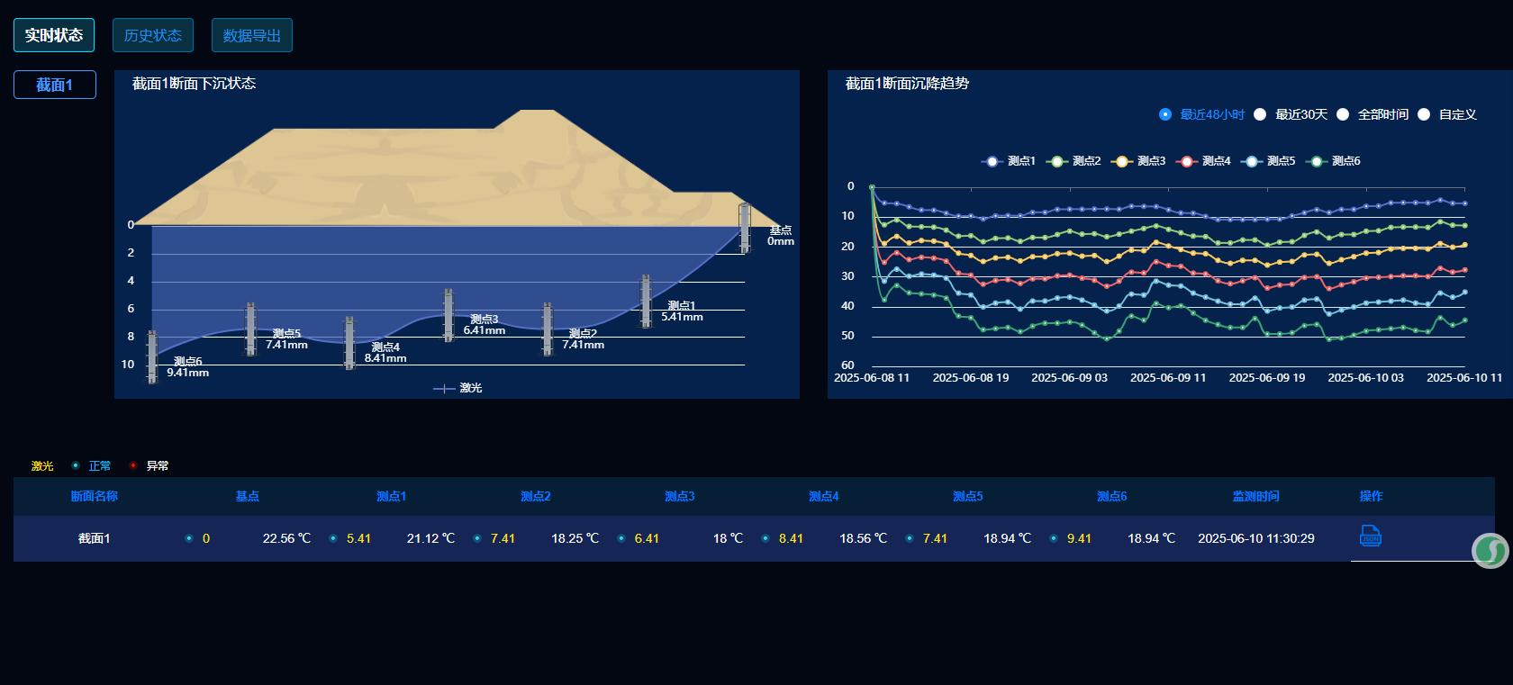 積極對接開發(fā)下埋式激光-壓力雙模傳感融合的核心監(jiān)測設(shè)備,實現(xiàn)數(shù)據(jù)交叉驗證與動態(tài)校準(zhǔn),消除環(huán)境擾動,突破了傳統(tǒng)靜力水準(zhǔn)儀的局限性,能夠動態(tài)追蹤堆載過程中的變形速率、趨勢及應(yīng)力響應(yīng),為堆載速率控制、卸載時機(jī)判斷、預(yù)壓效果評估提供數(shù)智化支持,有效保障施工安全與工程質(zhì)量。